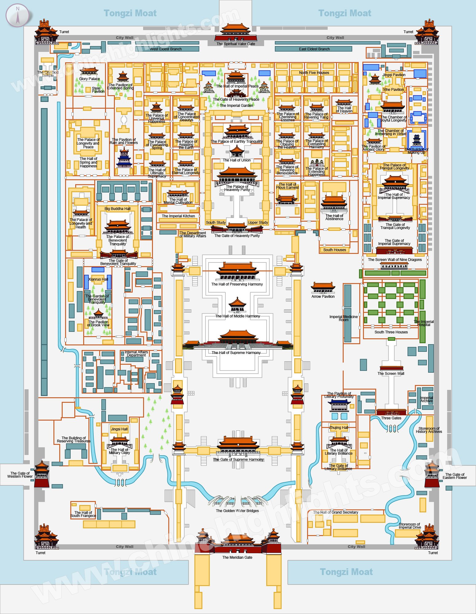 The emperors' residence was built leading north, as an earthly foil to the heavenly Purple Palace, i.e. the North Star, though to be home to the Celestial Emperor.